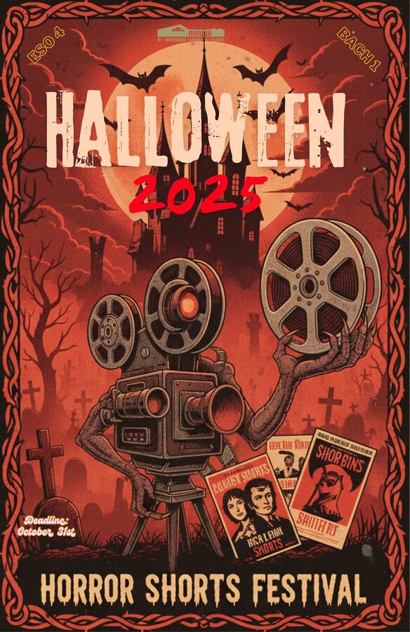 Y el alumnado de 4º de ESO y 1º de Bachillerato se pone detrás de la cámara, grabando en grupos sus propios cortos de terror. ¡Temblamos solo de pensarlo tras leer algunos de los guiones también escritos por ellos!