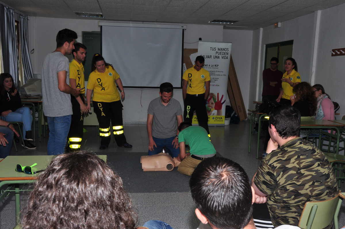 El viernes 8 de mayo se llevó a cabo una actividad en el edificio Alameda ( aula 15) a lo largo de toda la mañana y dirigido a todos los alumnos de FOL sobre el soporte vital básico y uso del desfibrilador semiautomático, realizando prácticas y simulaciones de situaciones reales. El taller fue impartido por la asociación DYA Extremadura.